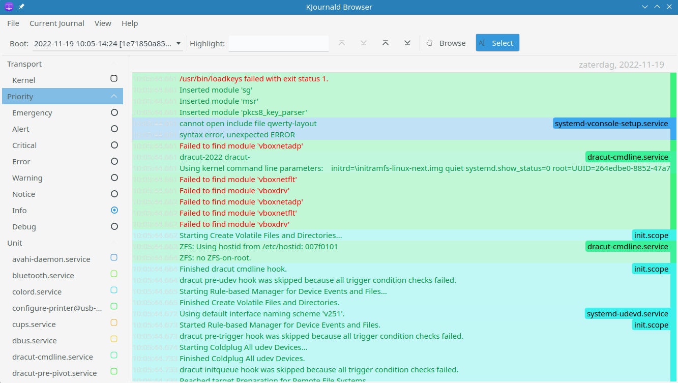 Getting good logs has always been a bit of a challenge since you have to know what journalctl commands to use. That is now a thing of the past, Kjournald gives the option to view the logs from a nice GUI, with all kinds of filter options in the left-hand pane (it is now part of the default install)