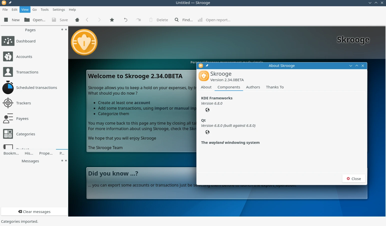 More application are now ready to use Qt6 and Frameworks 6 including Krusader, Kstars, Kmymoney, Mixxx, Photoflare, Skrooge and Liquidshell.